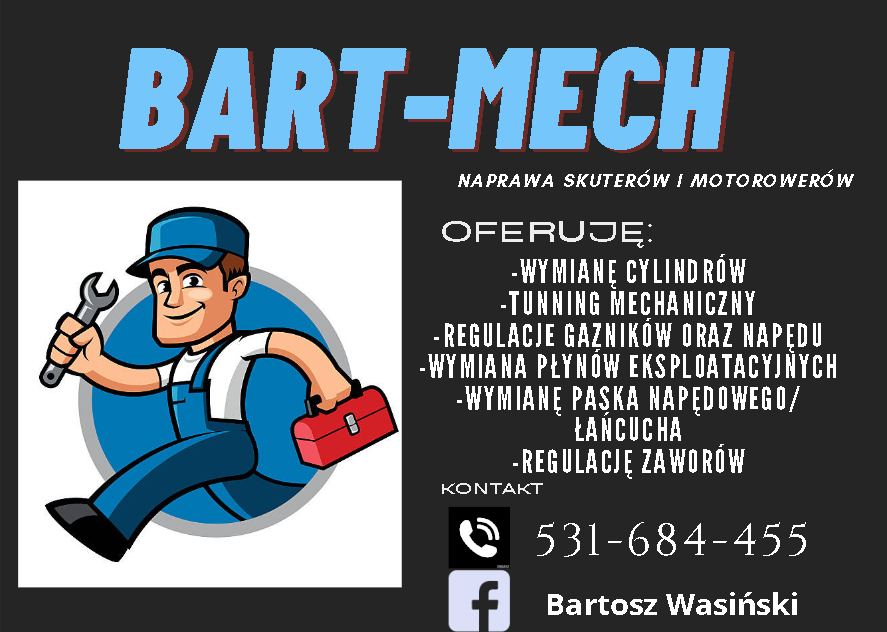 Witam zajmuję się naprawą skuterów,quadów oraz motorowerów! Zajmuję się również tuningiem mechanicznym!